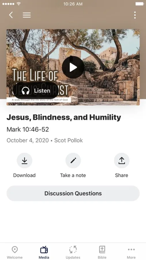 Our app is an interactive tool for users to experience our church's content in a new way. You can watch sermon series, get connected in different ministries, give, link events directly to your calendar, and so much more. You can also share the content you find on the app on a variety of social media platforms, including Facebook and Twitter.