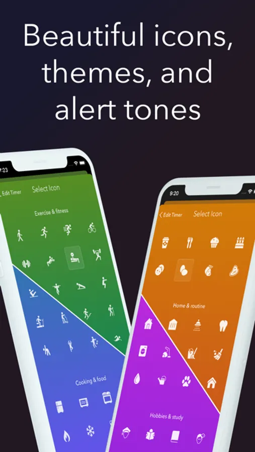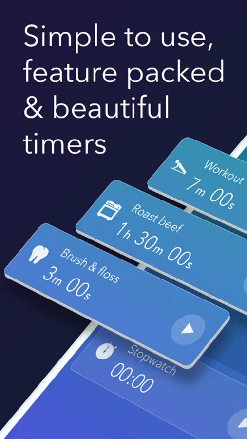 ● Pre-built timers - A library of forty timers to choose from, covering fitness, home & lifestyle, productivity, relaxation, and cooking.