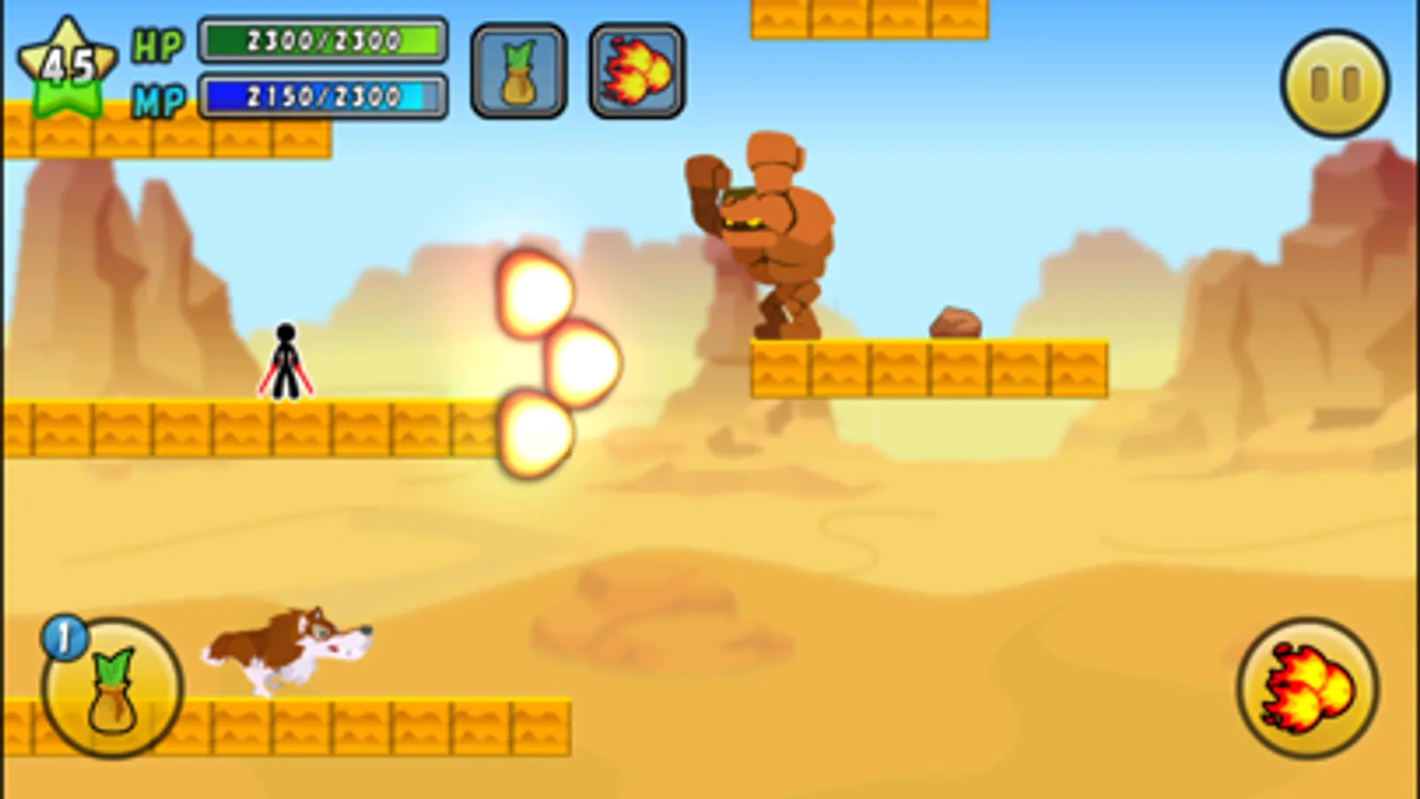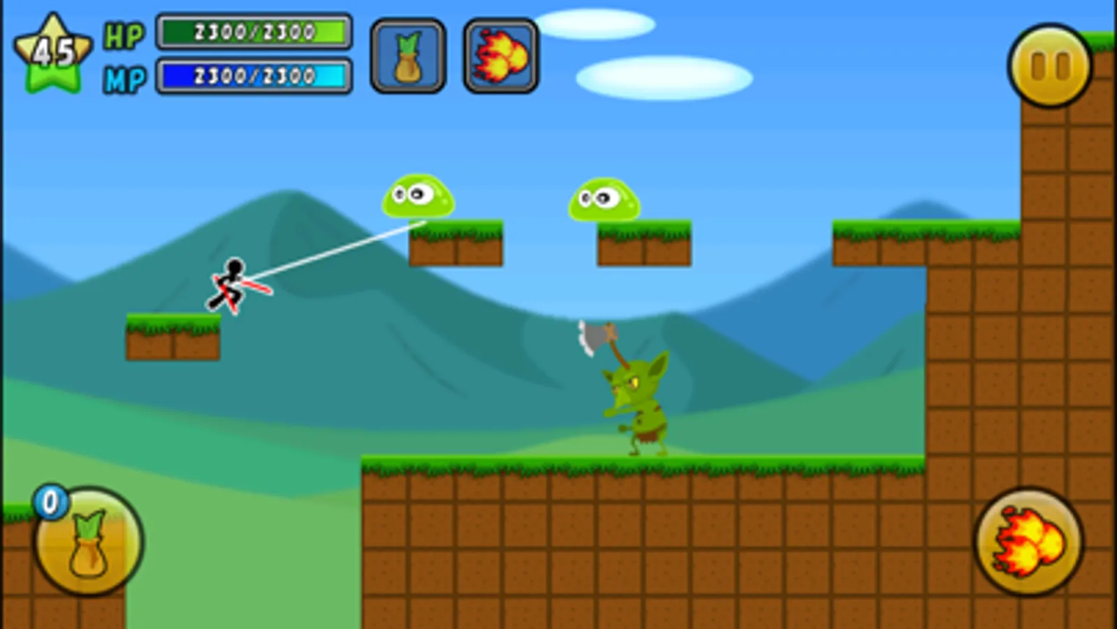 When fall from the ground or your HP decrease to zero, you will be game over.