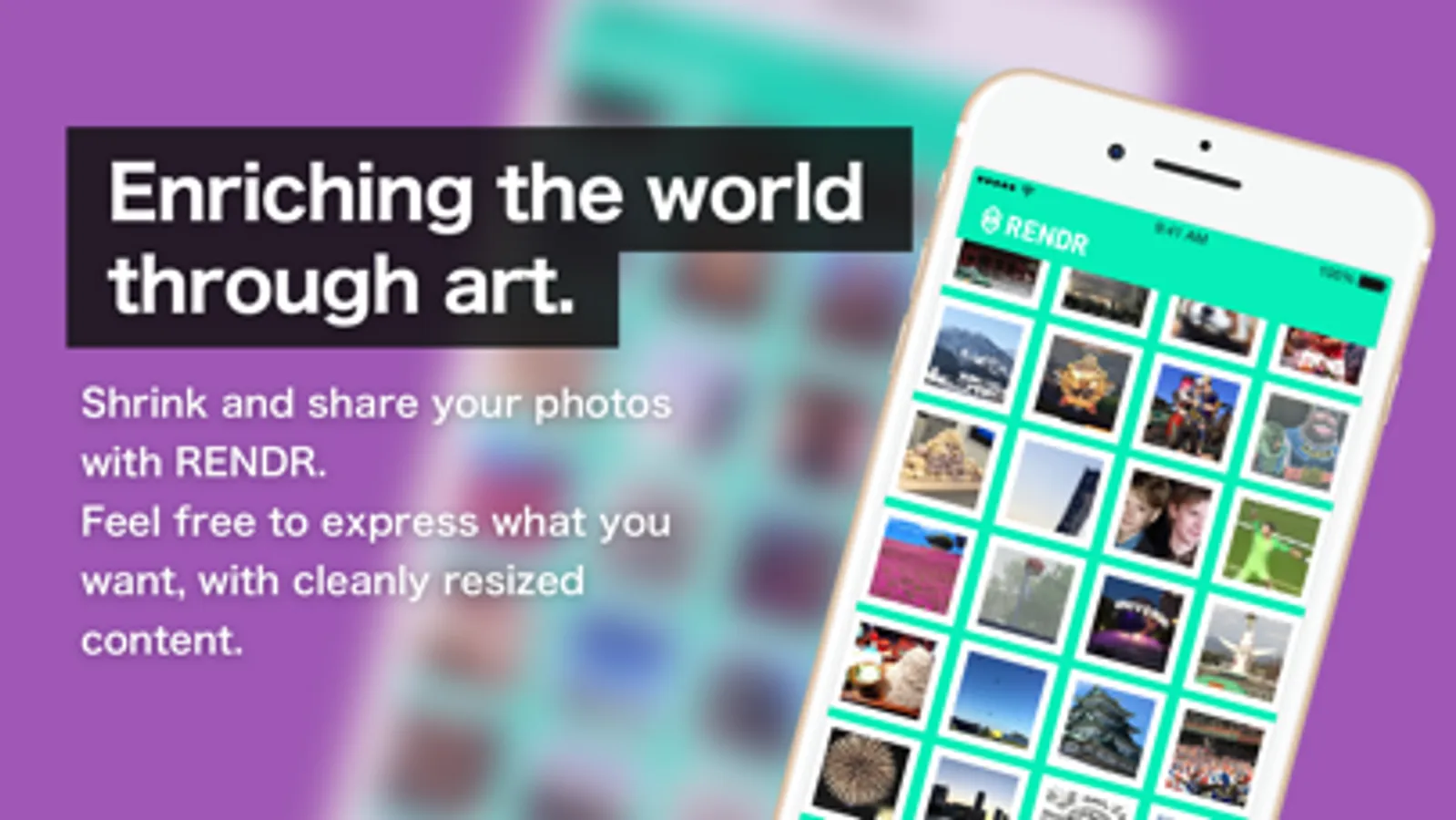 With RENDR, all it takes is a tap on the camera roll to resize and share photos and videos!