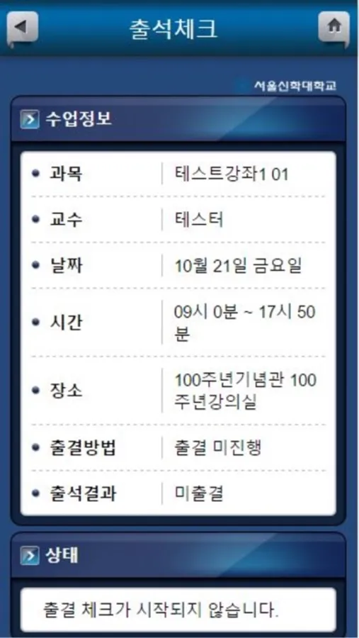 서울 신학대학교 스마트 출결 시스템은 오프라인의 강의실 수업방식에 있어서 편리한 출결관리를 지원해 주는 서비스 입니다.