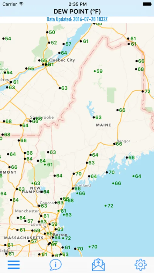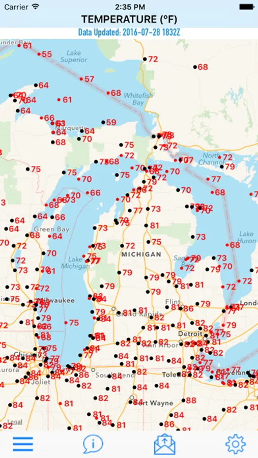 WeatherData is built for meteorologists and weather enthusiasts who wish to view real-time data plots of North American surface weather observations. The app retrieves data from the National Oceanic and Atmospheric Administration (NOAA) public web feeds that include surface data from U.S. and Canadian airports. Data from the National Data Buoy Center are also included for access to weather data from offshore weather buoys and special coastal stations.