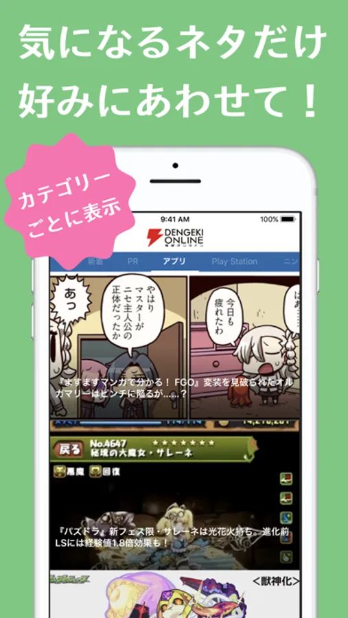 ニュースはカテゴリーごとに閲覧可能! 持っているゲーム機だけ、アニメだけ、スマホアプリだけと、お好みにあわせてニュースをチェックできます。