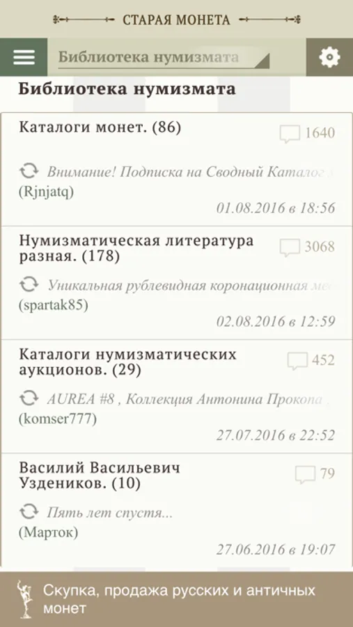Портал предлагает как структурированную базу данных, так и широко функциональный форум, где ведется обмен мнениями специалистов и новичков в нумизматике.