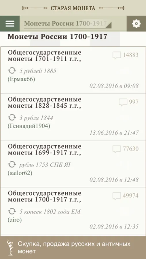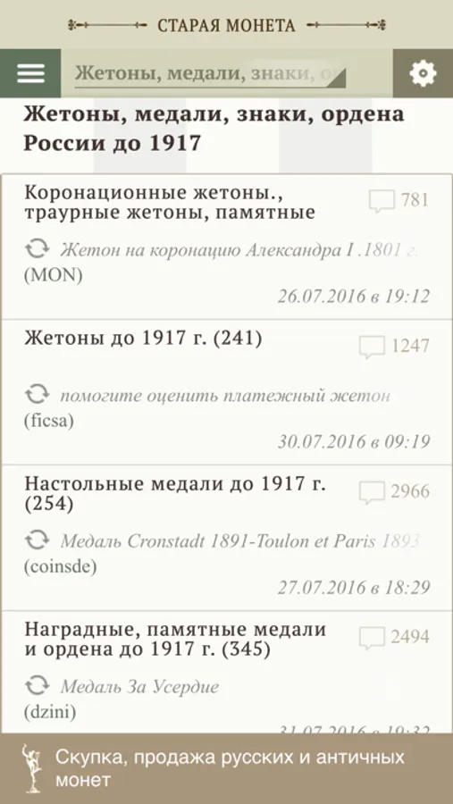Нумизматический ресурс «Старая монета» предназначен для коллекционеров и любителей старины, которые склонны делиться информацией – мнениями, оценками, а также выставлять свои лоты.
