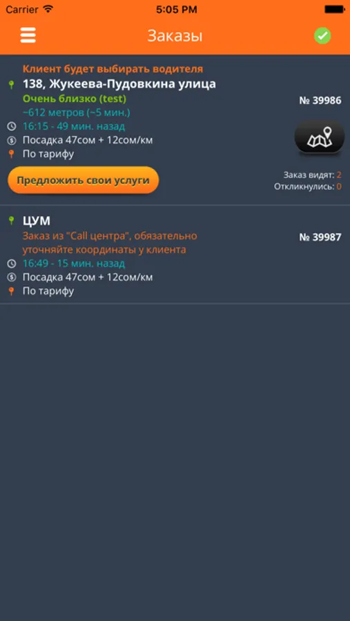 -Полностью автоматизированная система работы с заказами позволяет водителю в режиме реального времени видеть все поступающие в систему заказы.