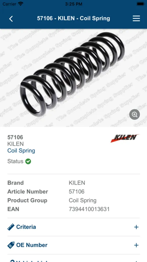 You can also use this function to find the Kilen alternative of an original equipment (OE) or competitor spring – just enter the part number to find the Kilen equivalent.