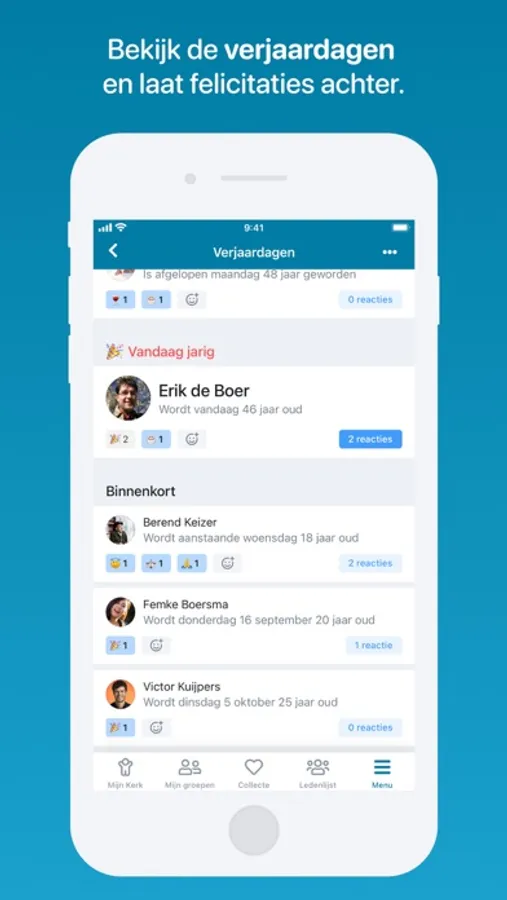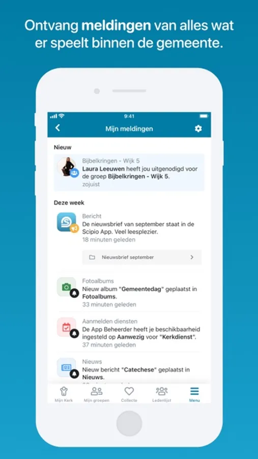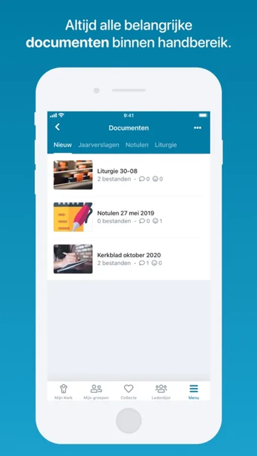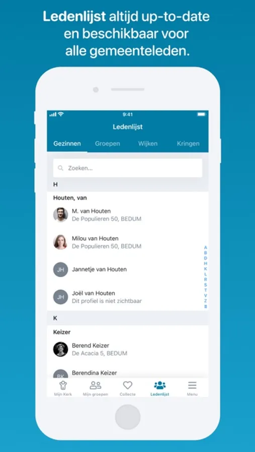 De app biedt een veilig en besloten communicatieplatform voor ieder gemeentelid van de kerk. Laagdrempelige toegang tot alle gemeente-informatie en de ledenlijst, conform de eisen van de AVG.