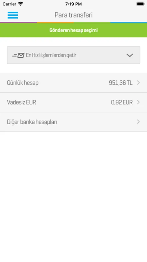 • En Hızlı ile daha önce kaydettiğiniz transfer ve ödeme işlemlerinizi çok hızlı bir şekilde gerçekleştirebilirsiniz.