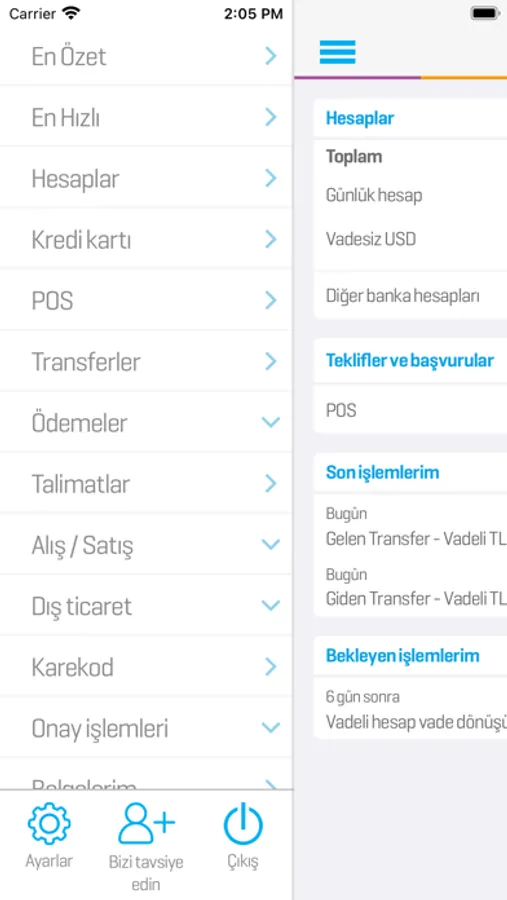 • Fatura ve kredi kartı ödemelerinizi yapabilirsiniz.