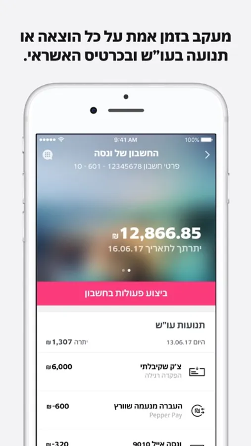 לקבל או להעביר כסף בקלות, להפקיד צ'קים, לאתר כספומטים.