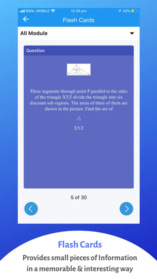 • Flash Cards - All the questions for the course come up as flash cards. Flash Cards make it easier for educators to provide small pieces of information in a memorable and interesting way.