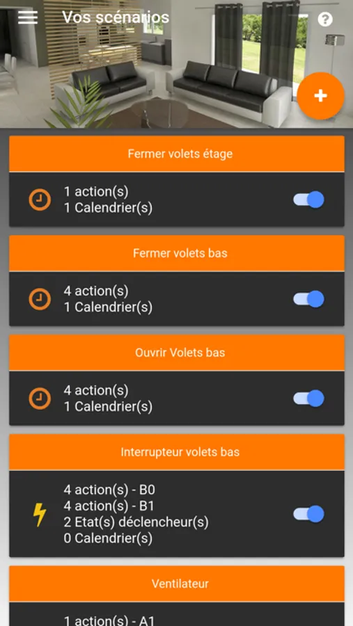 Une interface simple et intuitive pour ajouter vos équipements et créer vos scénarios, pilotage de vos appareils, visualisation des états de vos capteurs ou sondes, que ce soit en local de chez vous ou à distance.