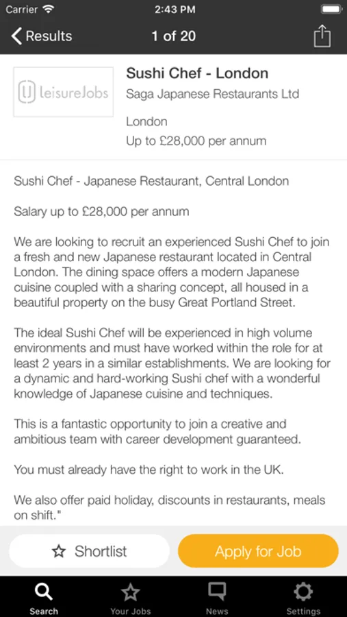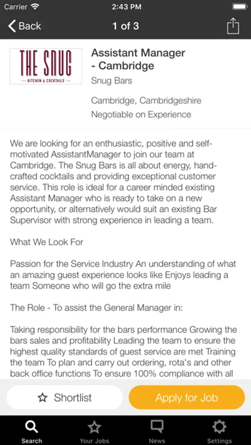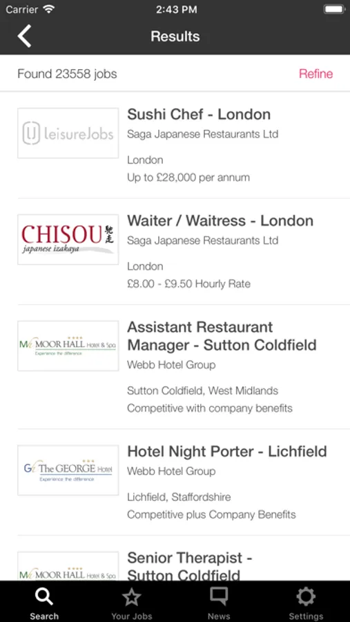Simply, it’s a great iOS job search App for Hospitality, Fitness, Retail and Travel Jobs. The App contains some awesome features to keep you ahead of the competition: