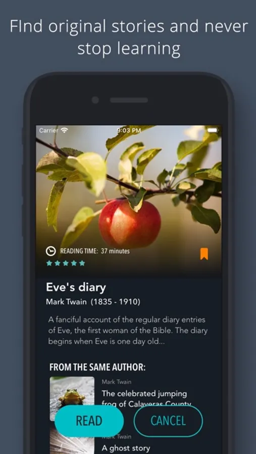 The store includes: stories summary, author biography, stories reading time and stories rating, to help you choose the story that better fits your day.