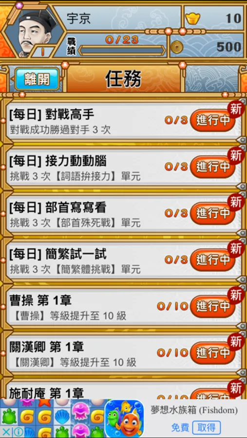 部首大考驗 – 214部首、萬字挑戰你的組合能力。