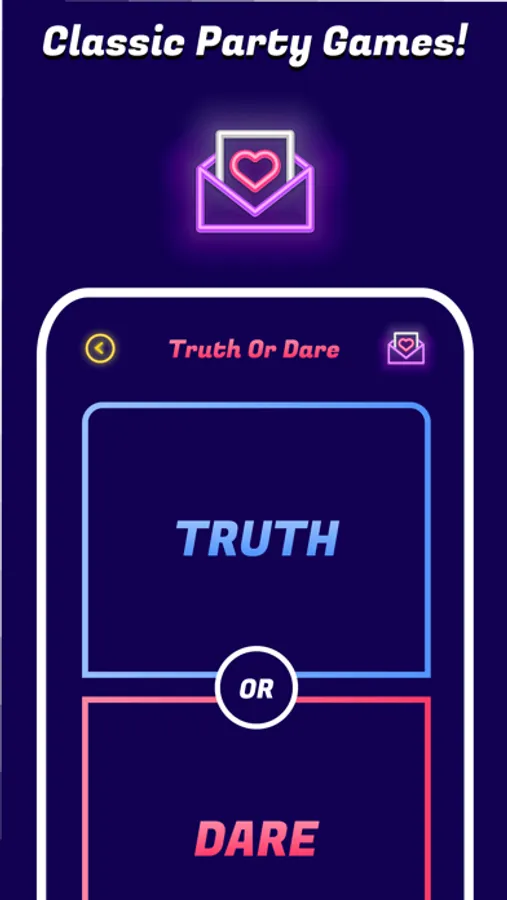 Party Time ---------- The title event in this party pack, Party Time is an original drinking game that combines a bunch of classics like Never Have I Ever, Truth or Dare, and Kings Cup for a novel party experience that will leave everyone buzzing with excitement.