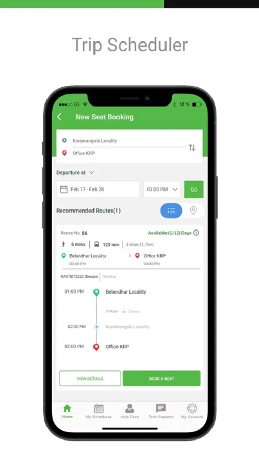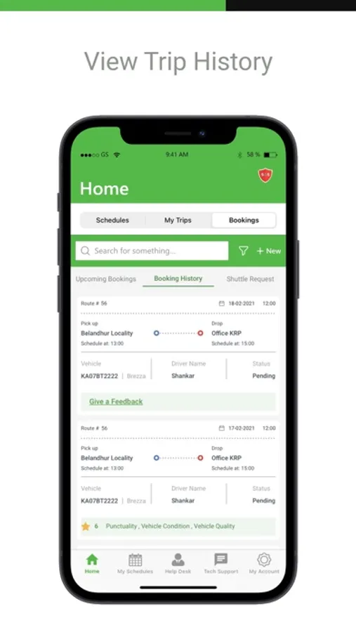 • Trip history: Commuters can view the routes being operated by your organization’s shuttle services and select the most convenient one.