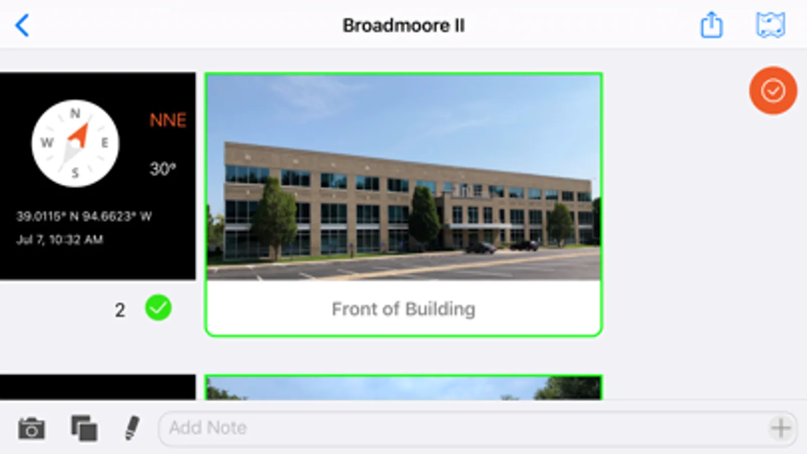 • Timeline: Photos and notes are organized in an intuitive timeline. This helps you recall your walk through a property and remember things you may not have noted.