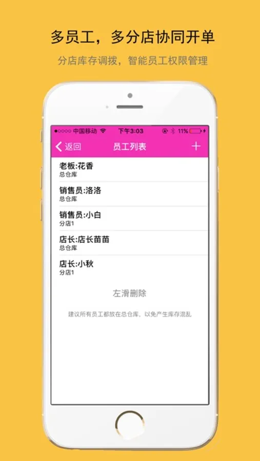 4.多员工,连锁店,同步开单,销售后有通知