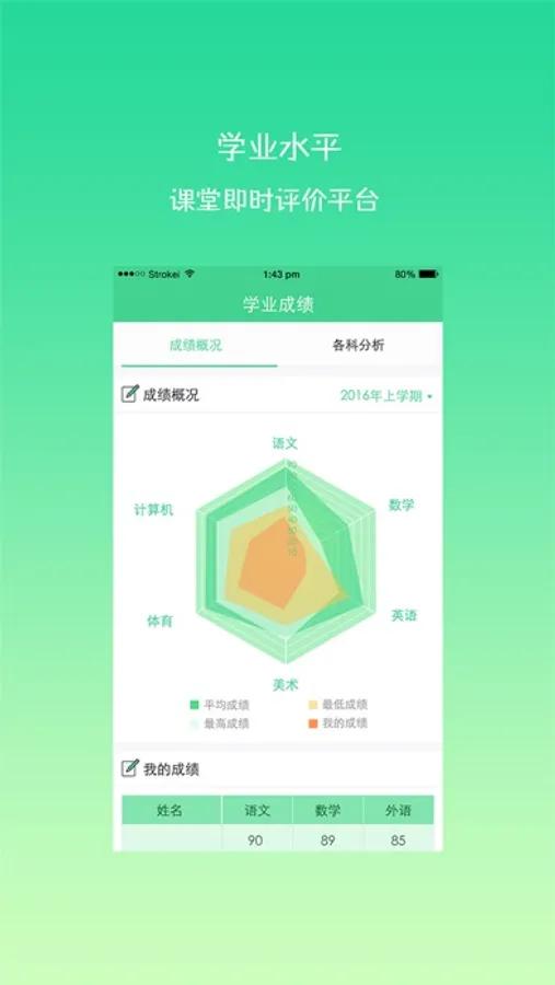 2、学业成绩:存储科目成绩,进行统计分析,让你的成绩会说话;