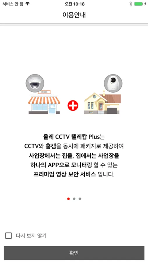 올레 CCTV 텔레캅 Plus는 CCTV와 홈캠을 동시에 패키지로 제공하여 사업자에서는 집을, 집에서는 사업장을 하나의 App으로 모니터링 할 수 있는 프리미엄 영상보안 서비스 입니다.