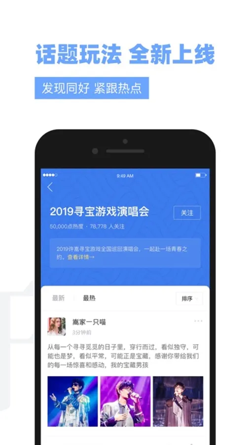 3、圈子广场设置多个频道,可发帖与许嵩及其他用户互动,还可以点击“关注”查看关注人的最新动态。