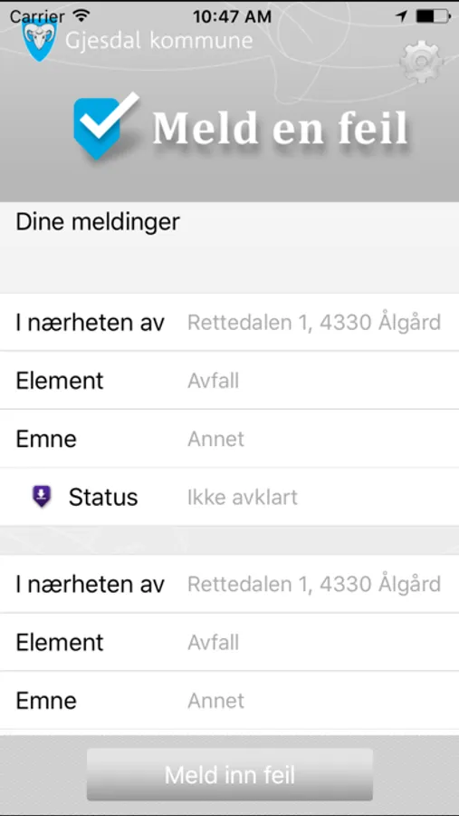Velkommen til Gjesdal kommunes nye APP til bruk for tjenesten– Meld en feil -.