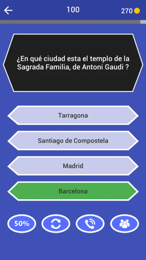 The questions are multiple choice: there are four possible answers and the player must choose the correct one.