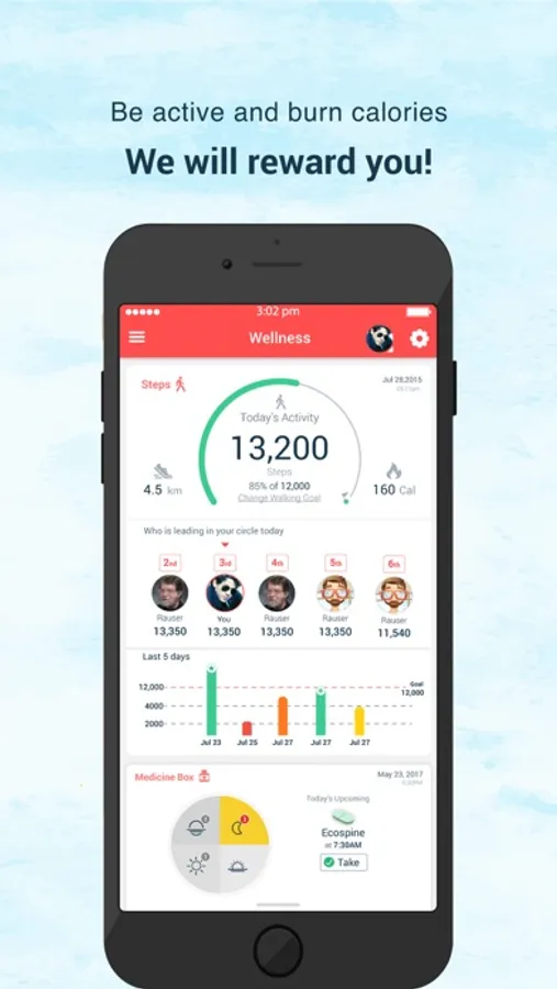 • Be Active - CircleCare will keep you motivated to be active with daily steps ranking competition and milestone badges.