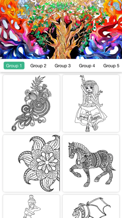 Many beautifully designed coloring pages in 20 different themes. Each theme comes with a selection of more than 100 beautiful colors and patterns for your children to discover and combine in any way they like.