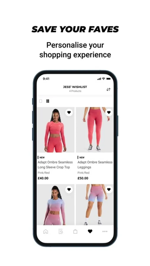 There’s more than just clothes shopping. Save your most-loved pieces so you can easily view and build your next outfit, or shop featured activewear looks if you’re feeling inspired. Whatever your conditioning style, get the Gymshark you love, on the go.
