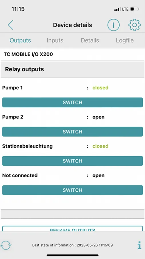 This app supports you in using the TC MOBILE I/O X200 SMS relay (firmware version 2.0 or later). It indicates the device status, and sends the switching commands – the manual writing of SMS is no longer necessary.