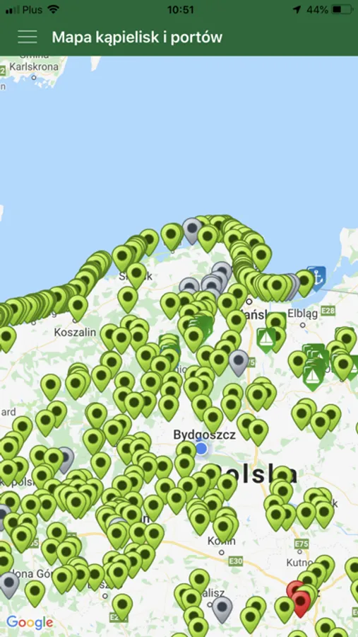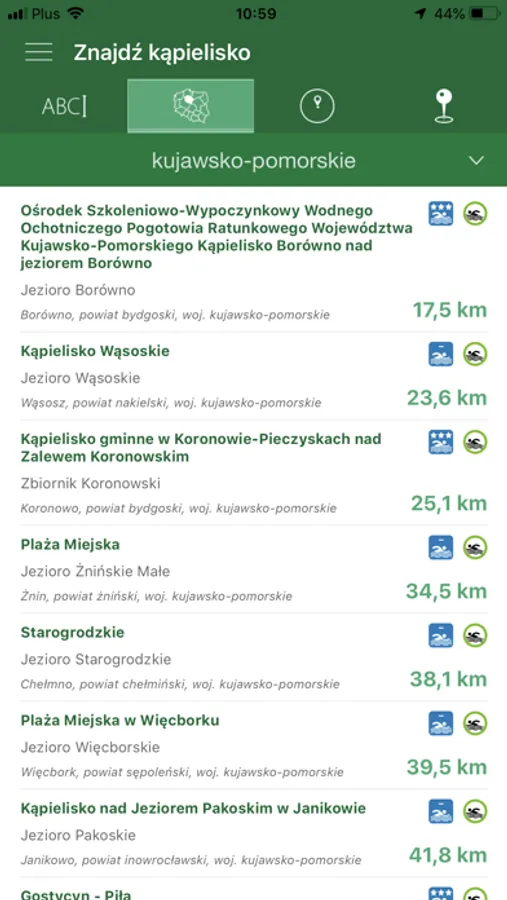 Aplikacja na bieżąco zbiera dane dotyczące czystości wody w poszczególnych lokalizacjach oraz zawiera wyszukiwarkę kąpielisk przy użyciu takich parametrów jak: promień w jakim chcemy znaleźć kąpielisko, nazwa, miejscowość czy promień względem wybranej miejscowości.