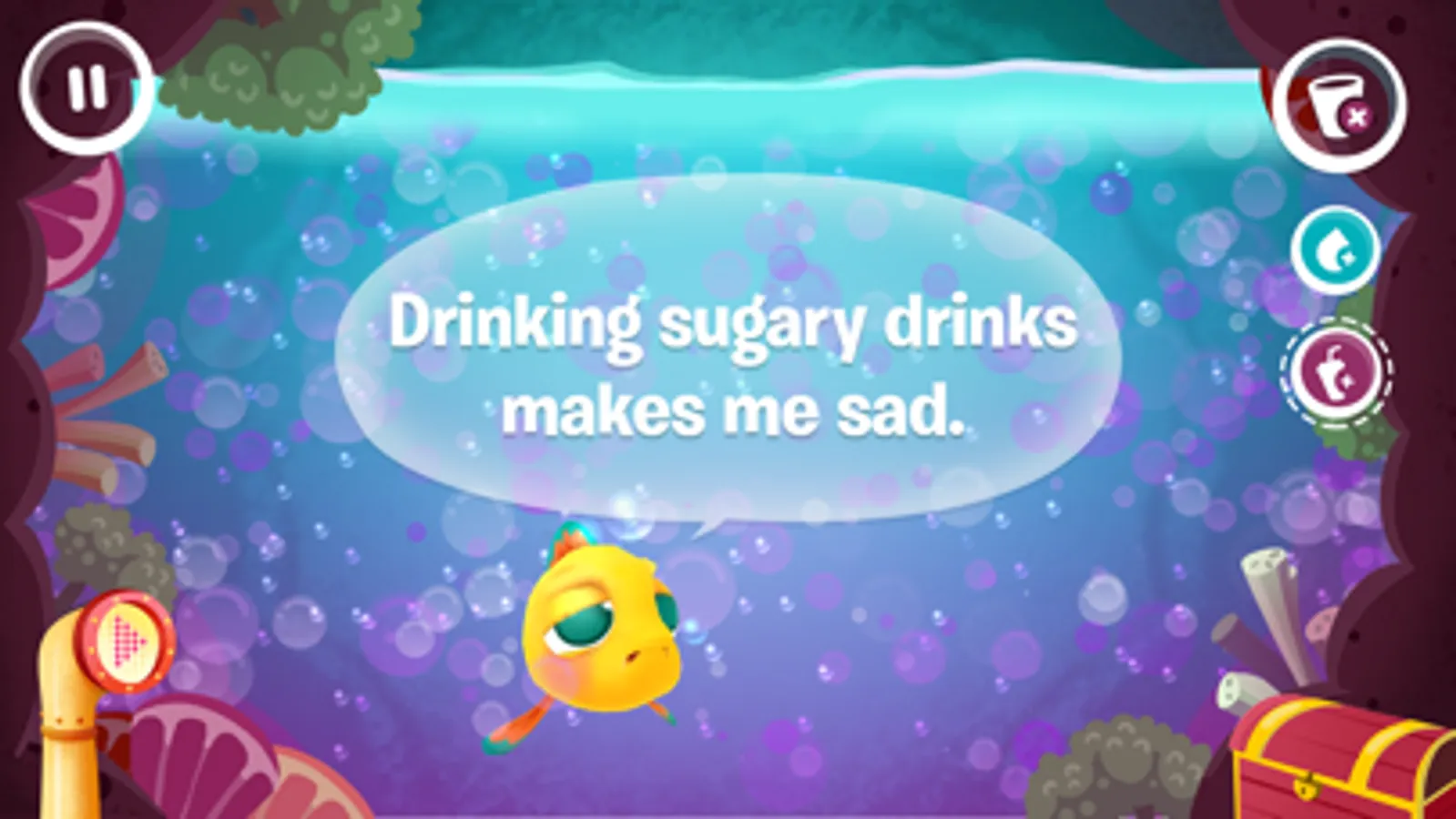 • See how water and sugary drinks affect your Tummyfish and her environment.