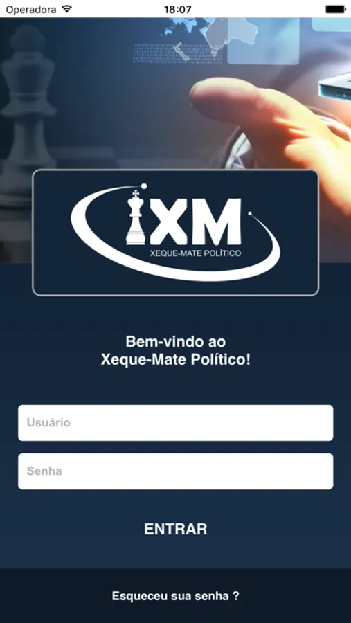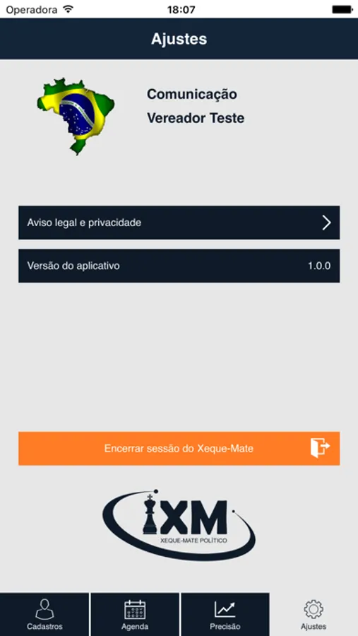 O Objetivo do aplicativo é cadastrar pessoas para o candidato se relacionar através de um sistema web, o app tem acesso a Agenda do Candidato. Depois de ter baixado e inserido a chave de acesso, usuário e senha previamente cadastrado no sistema web Xeque-Mate Político contratado pelo candidato da sua região. O aplicativo irá funcionar no método online.