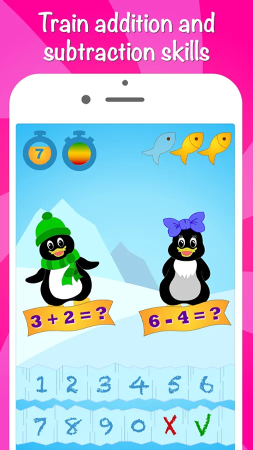 Simple KIDS-FRIENDLY INTERFACE makes the game enjoyable and comfortable for kids, helps them to train addition and subtraction skills easily and quickly.
