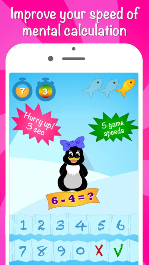 ICY MATH is the incredibly simple and fun way for training addition and subtraction skills! The game helps kids and adults to improve the speed of calculation, as well as memory, intelligence and wit.
