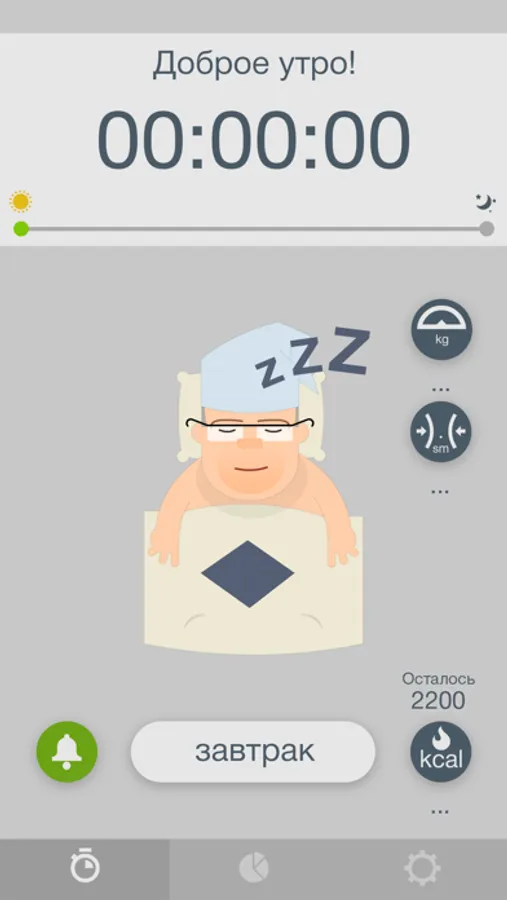 - Так будет происходить весь день до 12 ночи. После полуночи приложение засыпает до момента пока Вы снова не нажмёте кнопку ЗАВТРАК с утра.