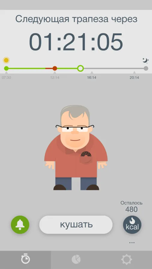 - Запускаете приложение и нажимаете кнопку ЗАВТРАК, Ваш интервал между приёмами пищи начал обратный отсчёт. Можете закрыть приложение.