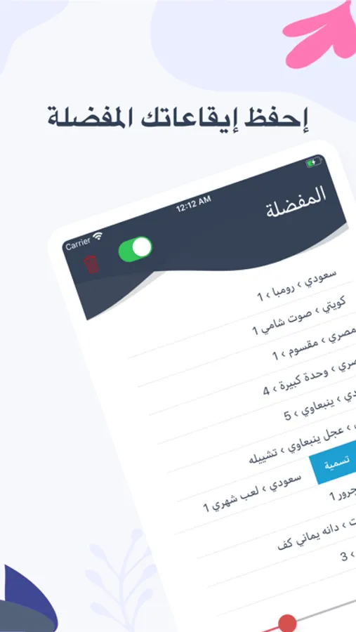 - امكانية تعديل اسماء الايقاعات المفضلة