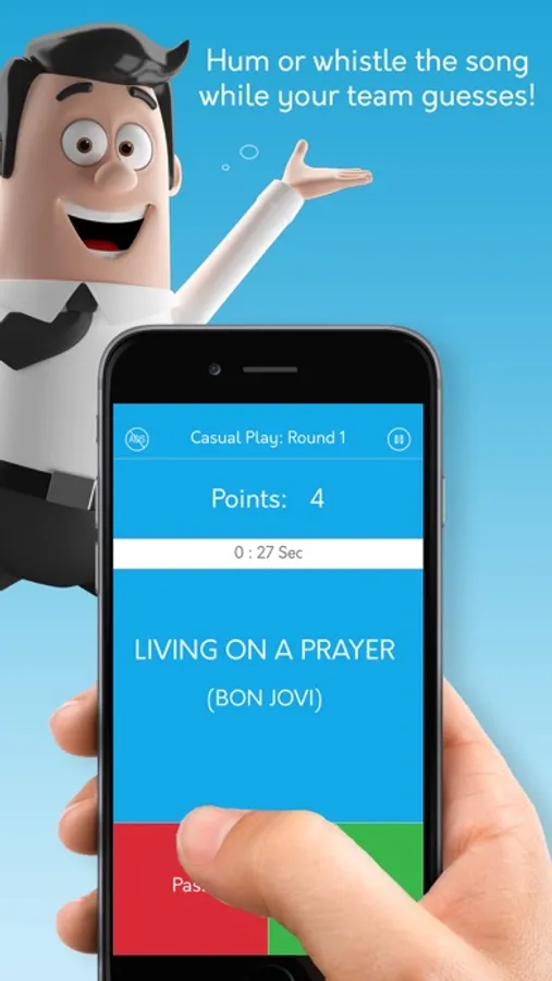 The game is simple: Just hum or whistle the songs that appear on the screen and try to get your partner(s) to guess as many song titles correctly within 60 seconds! I know, I know... it sounds easy right? Not so fast! Give it a try and you'll quickly find yourself laughing, frustrated, and most importantly- having fun!!!