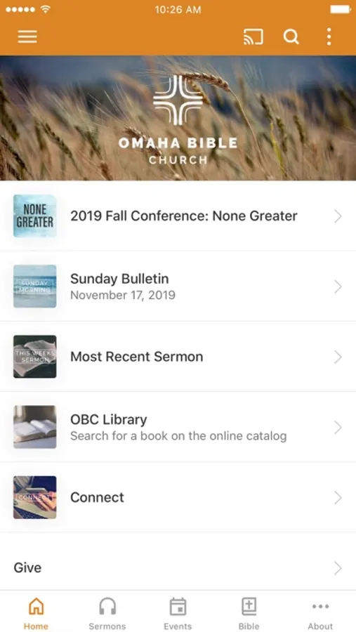 The Omaha Bible Church App was created with the Subsplash App Platform.
