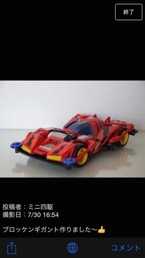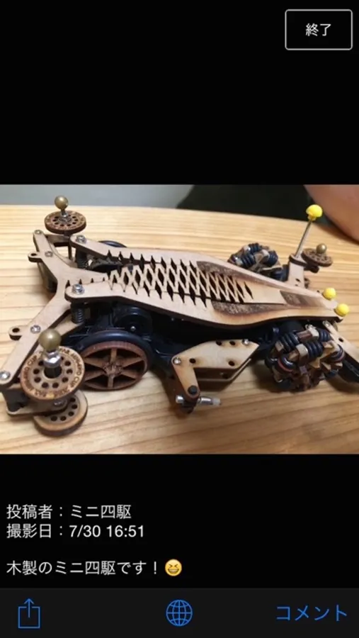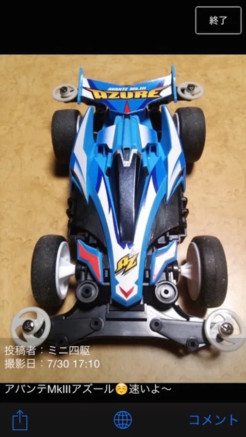ーー ミニ四駆の写真を共有して楽しむためのアプリです。
