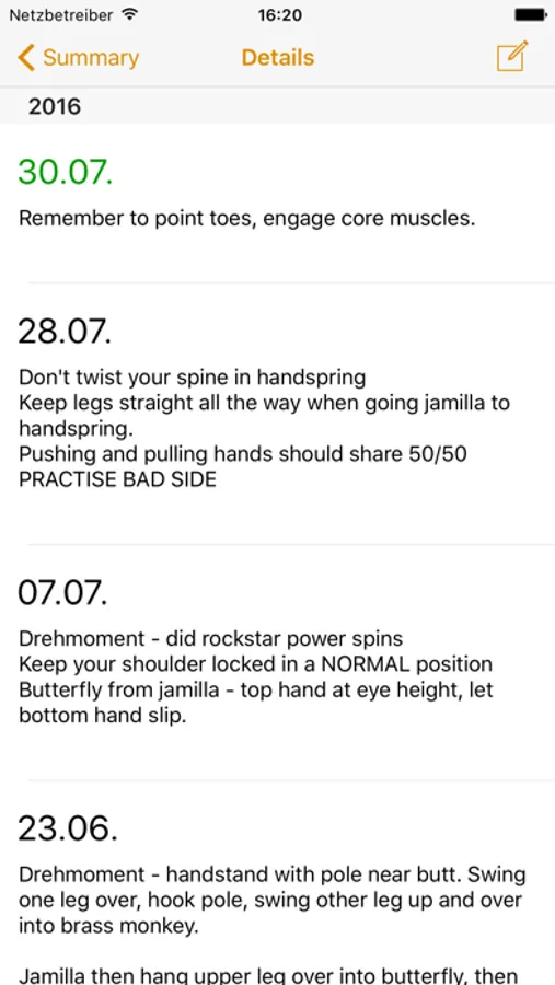 Waste less time fiddling with your phone, and spend more time learning, working, or training! If you are an active or busy person, you need to take notes quickly, easily, on whatever device you have with you. This app is a fast and simple journal/diary for your daily activities.