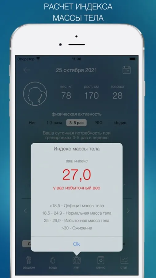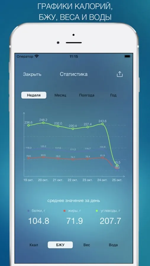 - возможность указания индивидуальных значений Б-Ж-У (для тех, кто знает свою норму)