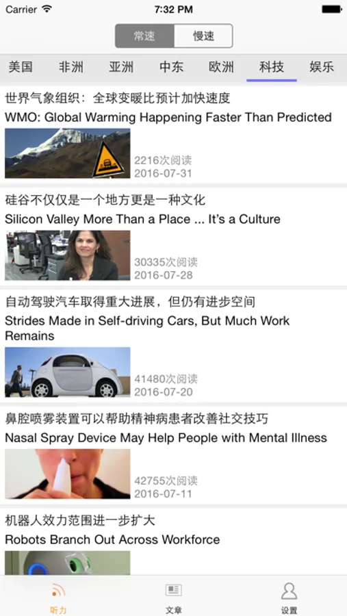 3.美国主播专门录制的听力和口语学习素材,发音地道纯正