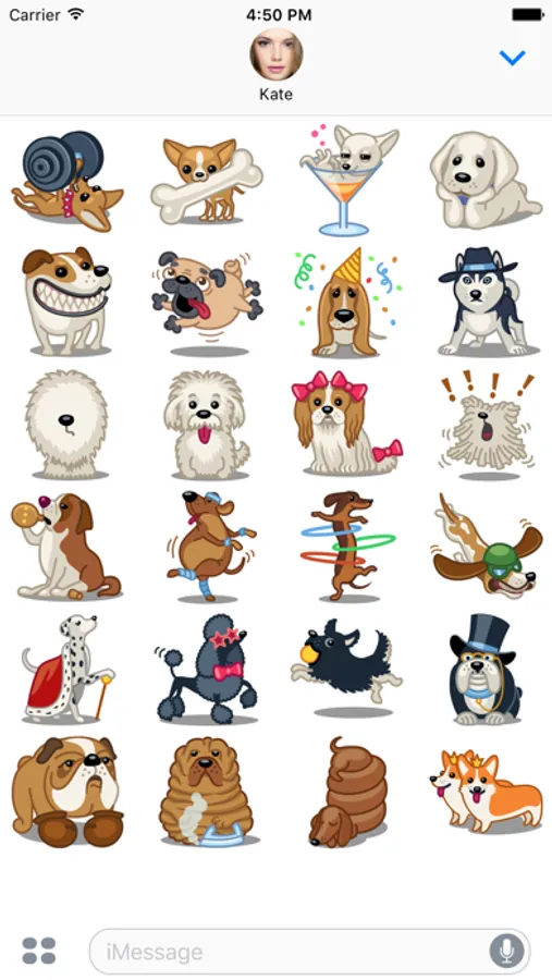 Step up your iMessage game with this awesome set of dog stickers! Guaranteed to make your conversations with your loved ones and friends more fun!
