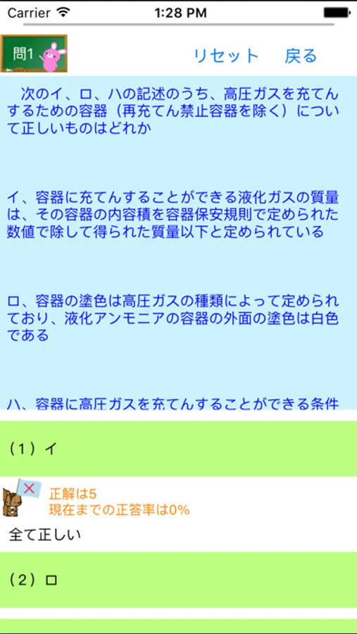 自動で間違えた問題を記憶し、間違えた問題、まだ解いていない問題を優先的に出題します。またセーブ機能がついているため、途中でやめても再度立ち上げた時に続きから問題を解くことができるので、効率よく勉強をすすめることができます(データは各科目ごとにmenuボタンからリセットすることができます)