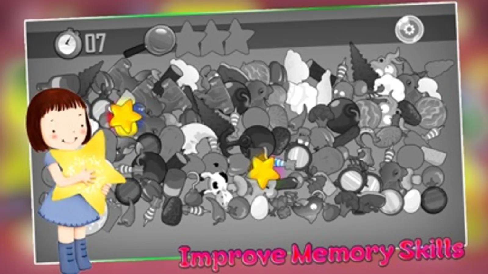 Train your kids in Hidden Object memory game for kindergarten and toddlers.